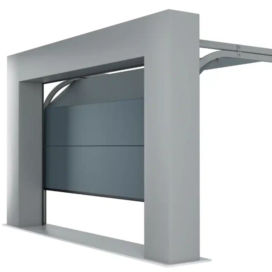 Ich panely sa pri otváraní posúvajú kolmo nahor a uložia sa pod strop, vďaka čomu šetria miesto v garáži aj pred ňou.
